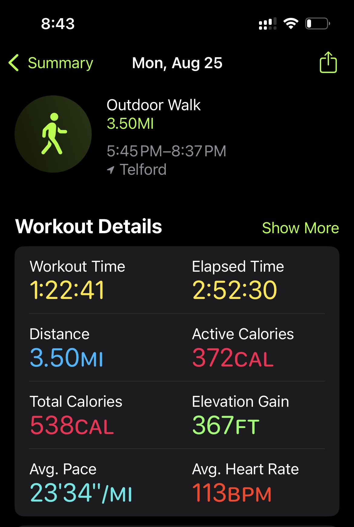 The walk itself isn’t anything fancy, but it always feels good to set out on foot and know we’ll end up somewhere we love. According to my Apple Watch, the round trip was 3.5 miles, including the little stroll around the town — which meant our date night doubled as a bit of exercise, too.