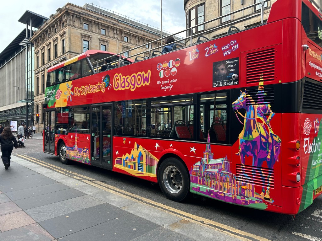 By the time we arrived in Glasgow it was already afternoon, so we decided to make the most of our limited time with the hop-on hop-off bus tour. It turned out to be the perfect way to see the city quickly. With most attractions closing around 4pm, we didn’t actually hop off at any stops, but riding the streets gave us a fantastic overview — from the grand Victorian architecture to glimpses of Glasgow’s vibrant modern culture. It felt like a quick sampler of everything the city had to offer, leaving us eager to come back and explore in more detail.