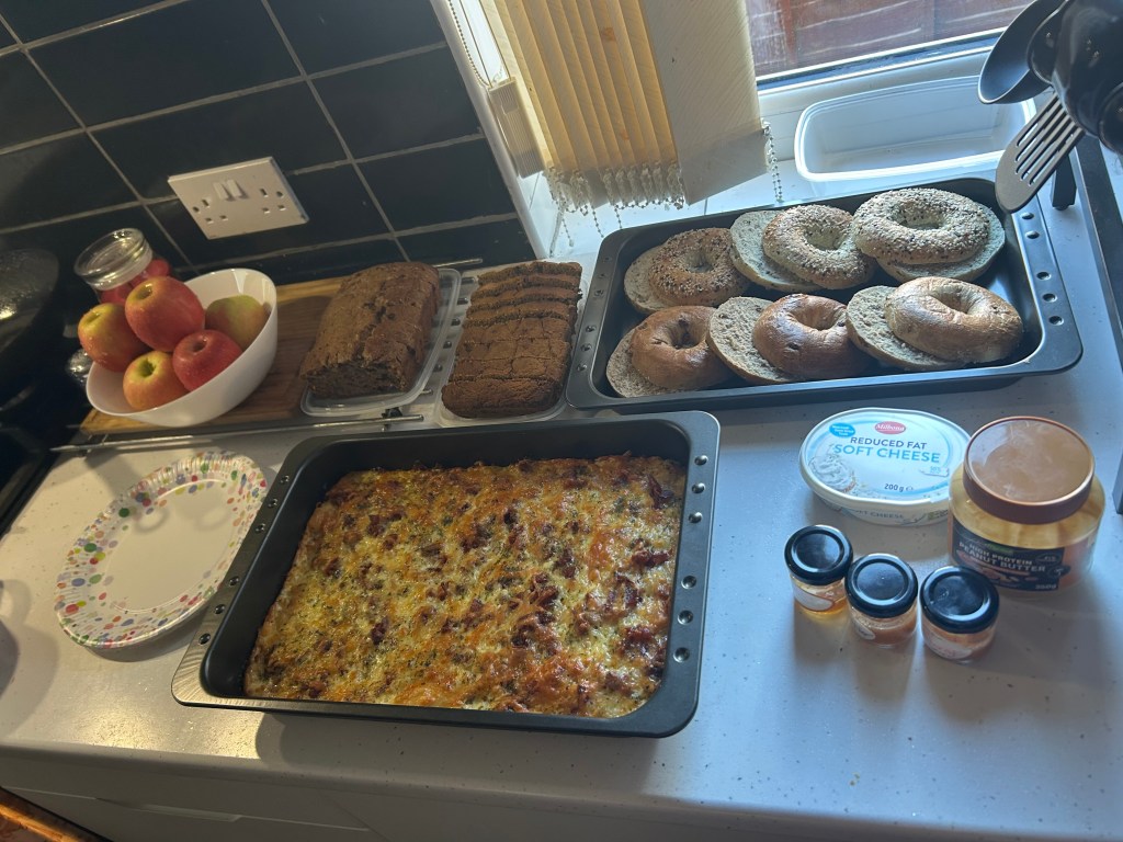 Alongside bagels and fresh fruit, it was the perfect slow, cozy start to the day — coffee and tea in hand, everyone lingering around, in Christmas pajamas.