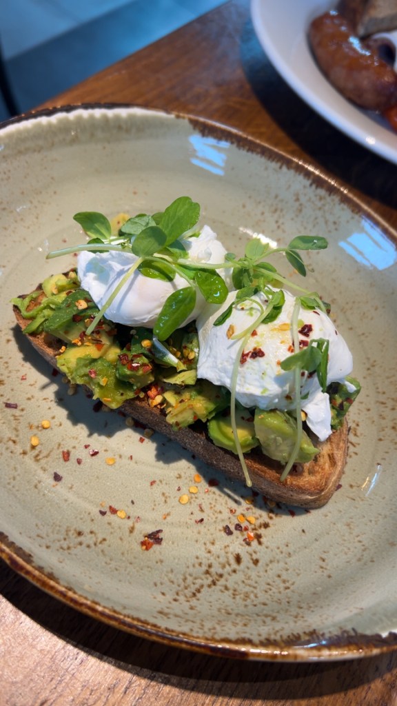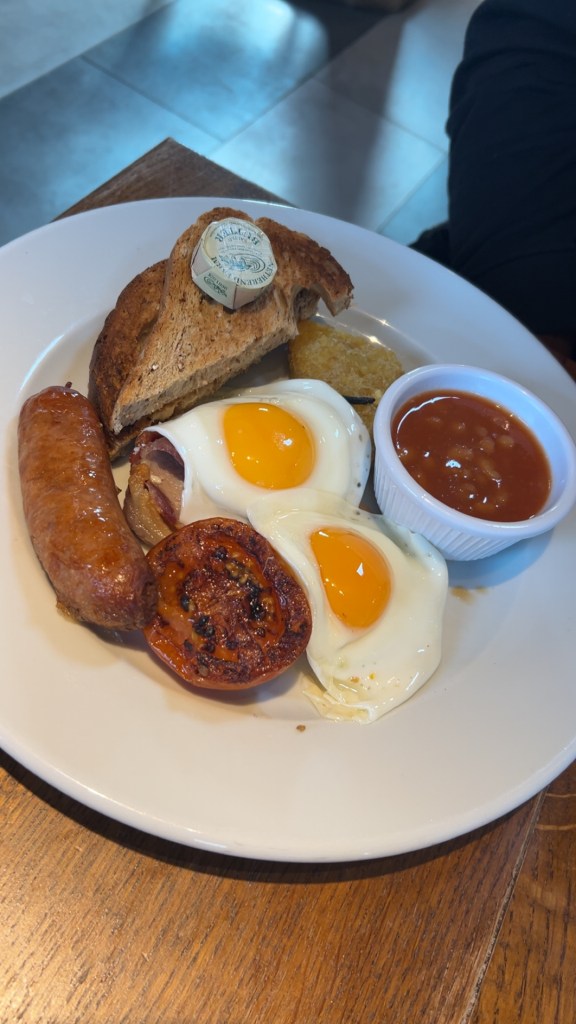 We started the morning at Apley Kitchen Café, a beautifully decorated spot with such a welcoming atmosphere and fantastic service. I ordered a gorgeous latte and their avocado toast — smashed avocado with lime and crushed chillies, topped with two perfectly poached eggs, all served on toasted sourdough. Fresh, vibrant, and absolutely delicious. My husband chose the (mostly) full English breakfast, which he thoroughly enjoyed as well.